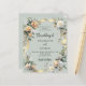 Um fundo verde sábio. Decorados com os florais brancos e amarelos e uma fita de ouro. Personalize e adicione seus nomes e detalhes. 1 folha = 1 convite impresso de borda a borda.