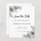 Folhas verdes de sábio de eucalipto dão uma aparência naturalmente elegante ao nosso "orçamento" Casamento Salve os Cartões de Data. Com a bela aquarela e as folhas verdes escuras, esses buquês tenentes de eucalipto criam uma ilustração perfeita para casamentos florais ou naturais, casamentos de jardim ao ar livre, além de casamentos no sul. O texto "Salvar a Data" é um elemento gráfico; todos os outros textos em frente e verso podem ser facilmente revisados no modelo de personalização. NOTA: Os cartões de orçamento não incluem envelopes automaticamente, porque muitas pessoas preferem comprar os próprios. Entretanto, há uma opção para solicitar envelopes usando a seta suspensa "opção de envelope".
