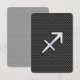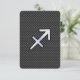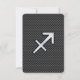 Um signo zodiacal Sagitário cromado em um fundo de textura de impressão em fibra de carbono preta. Um design urbano moderno e arrojado para uma ótima ideia de presente de aniversário personalizado.