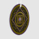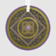 Esta mandala sagital retrata uma pedra ametista cercada pelo símbolo do cartaz, a constelação e o símbolo alquímico do Fogo entre o filigre e as ondas.