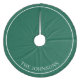 Você pode mudar o fundo verde de cor sólida caçador nesta saia personalizada da árvore de Natal. Você também pode alterar a cor da imagem de borda branca fina. Personalize a fonte do seu nome de família.