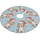 Os beagles mais fofos decoram esta saia-árvore com fundo azul claro e flocos de neve dourados brilhando.