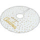 Adicione esta saia festiva e elegante da árvore de Natal às suas decorações de Natal. Projetado com texto: Feliz Natal, cercado por aglomerados de estrelas douradas sobre fundo branco macio.