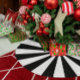 Saia Para Árvore De Natal De Poliéster Faixas de Starburst brancas e pretas