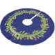 Esta saia da árvore de Natal caracteriza uma ilustração da grinalda do feriado em um fundo azul escuro. O texto branco do roteiro permite que você personalize com seu nome.