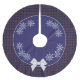 O Elegante orgulho tradicional da xadrez de tartan da Escócia saia de Natal, com gráficos de uma camada de círculo azul de regência (quase roxa) com grandes flocos de neve, ao redor das bordas. Gráficos de um arco branco, na frente da saia, rodeiam esta saia festiva chic.
