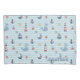 Dive into a delightful underwater adventure with this charming, personalized nautical pattern. Against a soft blue, wavy stripe background, adorable hand-drawn illustrations of smiling blue whales, cheerful sailboats, classic red and white lighthouses, anchors, starfish, and compasses create a fun, repeating design. This playful, gender-neutral pattern is perfect for adding a touch of coastal whimsy to a baby nursery, toddler bedroom or playroom. The simple, cheerful art style and soothing colors evoke the joy of the ocean and make it an ideal choice for creating a bright, breezy maritime space. Search ID1228 to see other products with this cute pattern. Note: design adapted from generative content.