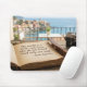 Elevate your workspace with this inspiring vintage travel mousepad featuring the famous quote by Saint Augustine: "The world is a book, and those who do not travel read only one page." Designed for digital nomads, world travelers, and book lovers, this high-quality mousepad showcases a rustic open journal, an antique film camera, and a stunning Mediterranean coastal view. The warm, nostalgic aesthetic makes it a perfect traveler gift or a motivational addition to your home office decor.