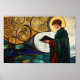 Esta impressionante representação de Ruas. Patrick combina simbolismo rico com um estilo eterno e pareado. Vestidos em robes verdes profundas e banhados à luz do ouro, o amado santo padroeiro da Irlanda está a contemplar, segurando as escrituras sagradas. O intricado fundo evoca elementos de vidro manchado e de artista celta, representando Ruas, a profunda sabedoria espiritual de Patrick e a sua missão de espalhar o cristianismo.