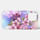 Articulação artificial, ramo de cor-de-rosa, cereja floresce sobre fundo picturesco, texturizado, pintado com tinta branca, rosa e azul. Pink Sakura