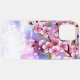 Articulação artificial, ramo de cor-de-rosa, cereja floresce sobre fundo picturesco, texturizado, pintado com tinta branca, rosa e azul. Pink Sakura