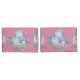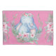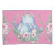 Um adorável elefante bebê sonolento pintado com aquarelas está cercado por bonito flores cor-de-rosa e folhas verdes moles nestas fronhas bonitinhas. O fundo está em um rosa suave. Perfeito para uma menina que ama animais ou um berçário de bebês para uma garota.