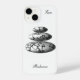 Fique calmo e tenha uma caneca de seu pinto favorito neste design de mármore estético, simples e limpo, de três pedras lisas e ovais organizadas em uma pilha vertical, com a maior pedra no fundo, uma pedra média no meio, e a menor pedra no topo, criando uma imagem de equilíbrio perfeito de Zen.