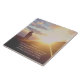 Um azulejo de cerâmica de Escritura Inspiracional mostra uma garota olhando para um belo pôr do sol sobre as montanhas. Ele apresenta o Salmo Verso Bíblia 121:1-2, "Eu levanto meus olhos para as montanhas - de onde vem minha ajuda? Minha ajuda vem do LORD, o Criador do Céu e da Terra."