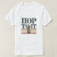 Esta imagem apresenta uma camiseta branca com um design lúdico e atraente. A camisa exibe a frase "SALTO A TI" em letras maiúsculas e em negrito sobre um gráfico de coelho. O coelho é posicionado em frente a um fundo listrado, adicionando um toque de cor e estilo ao design. Esta camiseta é perfeita para amantes de os animais e para aqueles que gostam de diversão e moda casual. A combinação do bonito gráfico coelho e do slogan motivacional faz dele uma peça de roupa interessante e atraente.