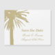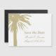 Magnético personalizado do casamento de praia salve o cartão de data. Fácil de pendurar na geladeira. Linda silhueta de palmeiras de areia colorida. Design tropical para casamentos de verão e de destino.