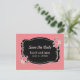 Permita que seus convidados de casamento salvem a data para sua ocasião especial com este belo cartão postal. Este cartão-postal apresenta um belo fundo cor-de-rosa com um gráfico floral rosa e preto. Dentro do design é "Salvar a Data" com um lugar para escrever seu nome e data do casamento. Peça o seu hoje! Trabalho de arte criado por: AMBilustrações http://www.etsy.com/shop/AMBillustrations/