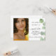 Uma foto moderna e elegante Salve o cartão Data. Um fundo branco chico decorado com verde de eucalipto. Personalize e adicione sua foto e detalhes.