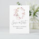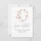 Uma bela grinalda em aquarela de flores delicadas rosa pastel com letra simples e tipografia para o anúncio perfeito de Salvar a Data de Casamento.