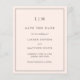 Salvar a data de casamento simples e econômico em rosa delicado com um design moderno e elegante com o seu monograma de duas letras no topo e os detalhes do seu casamento cercados por uma fina borda. Um design chique e elegante que é ótimo para um casal minimalista.