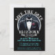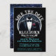 O convite de smoking preto com um fundo noturno estrelado salva a data. Você pode personalizar o texto facilmente para qualquer ocasião se quiser este modelo de convite.
