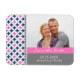 Salve a data em ímanes de casamento em azul-marinho escuro elegante e moderno, cor-de-rosa-quente fuchsia brilhante, cinzas e círculos retrorados brancos e diamantes em ousado padrão geométrico. Totalmente personalizável com seus nomes, fotos e data de casamento, disponível em uma grande variedade de produtos de casamento correspondentes. Entre em contato conosco para obter uma cor ou um design personalizado.