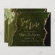 Este cartão de salvar a data do casamento apresenta uma imagem de fundo de água-forte de azeviche verde ágata aparada com brilho dourado falso. O texto personalizável combina escrita moderna dourada, copperplate e fontes itálicas. O verso apresenta um design coordenado de azeviche verde e ágata dourada.