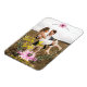 "Modelo de ímã minimalista com espaço para foto e texto limpo."