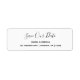 Salve nossa data de casamento Rótulo de devolução Simples design, Elegante, a etiqueta de retorno perfeita para enviar, salve as datas, casamento e convites de chá de panela. Personalizável em Zazzle.com/SamanthaPayneCo