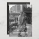 Este convite de casamento moderno, guardado na data, apresenta uma camada gráfica que pode ser usada com as suas próprias fotos. Personalize a parte frontal e traseira deste convite para na moda.