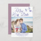 Elegante e romântico Salvem a Nova Data - cartão com fotos de adiamento do casamento, apresentando uma lindíssima e delicada orquídeas roxas, linha floral desenhando na parte superior, sobre um fundo branco. Facilmente personalizável adicionando uma das suas fotos horizontais favoritas do noivado e editando os campos modelo na banda inferior com seus nomes, data e local em uma fonte moderna e simples de bonés roxos. Para mais personalizações ou encomendas personalizadas, contacte-me livremente em acherryonthecake@hotmail.com (permita 1-2 dias úteis). Este cartão Salvar a Data faz parte da coleção "Orquídeas Delicadas - suite de casamento Puro Periwinkle" com muitos itens coordenadores para criar um pacote de casamento exclusivo.