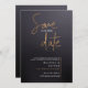 Um anúncio moderno, dramático, "Salve a data" com um fundo radiante fora do preto e uma inscrição dourada. Pode ser usado como um novo anúncio de data ou como um anúncio de data reprogramado. (Vetor de casamento criado por freepik - www.freepik.com). O cartão é fácil de personalizar com suas opções de texto, fonte, cor da fonte e forma de papel. Não exatamente o que você está procurando? Todos os nossos produtos podem ser personalizados para atender às suas necessidades sem custos adicionais. Basta entrar em contato conosco em askcottonlamb@gmail.com. Coordenando os produtos disponíveis: Apenas nos pergunte!"