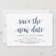Mudar o cartão de data. Este é o convite para a festa de casamento remarcado (adiado / adiamento), em um design moderno minimalista simples e limpo temático, fonte Azul Naval.