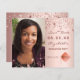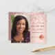 Uma foto Salve a data de uma festa de formatura. Na frente: adicione sua própria foto vertical do formando. Um rosa dourado, cor de fundo de pincel, decorado com estrelas. Personalize e adicione um nome e data. O nome e o texto: Salvar a Data são escritos com um script de estilo moderno com letra manual.
