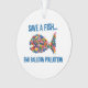 SALVAR UM ORNAMENTO DE ÁRVORE DE POLUIÇÃO DE BALÃO DE PEIXE COM O RIBBON - ENVIAR UMA MENSAGEM A TODOS SOBRE OS PERIGOS DE BALÕES NAS NOSSAS VIAS ÁGUAS, MARINHAS, ÁRVORES, ESTRADAS E FIOS ELÉTRICOS - O OUTRO LADO APRESENTA UM LOGOTIPO COM DOLFINOS E PEIXES.