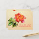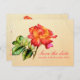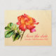 Lindo cartão postal de casamento com pintura em aquarela de rosa de arte fina dupla face para salvar a data. Simples e clássico convite de aviso prévio de casamento romântico em tons quentes de vermelho, rosa, laranja e creme. Design clássico de casamento parte do conjunto de papelaria de casamento tea rose art. Edite este cartão postal com seus nomes, datas e texto. Perfeito para um casamento de jardim ou tradicional. Pintado exclusivamente em aquarela por Sarah Trett.