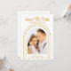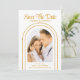 Salve a data White Dourado Na moda com Script Art Deco Cartões de Casamento apresenta a sua dentro de fotografia favorita em um fundo branco. Personalize com seu texto editando o texto nas caixas de texto fornecidas. Projetado para você por ©Evco Studio www.zazzle.com/store/evcostudio