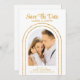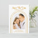 Salve a data White Dourado Na moda com Script Art Deco Cartões de Casamento apresenta a sua dentro de fotografia favorita em um fundo branco. Personalize com seu texto editando o texto nas caixas de texto fornecidas. Projetado para você por ©Evco Studio www.zazzle.com/store/evcostudio
