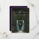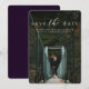 Com uma tipografia simples, mas elegante, este save the date é um design clássico que apresenta uma única foto vertical. A frase em branco é colocada na parte superior da foto junto com um filtro de escurecimento para permitir uma melhor legibilidade. O verso é uma tonalidade de roxo profundo manchado, mas a cor é editável clicando em "personalizar".