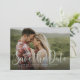 Você está noivo! Divulgue a sua notícia feliz e a data do seu grande dia com este save the date de uma foto. A sua foto de noivado será a estrela do show contra o simples roteiro verde claro de "salve a data" e o suporte sutilmente pontilhado pode ser facilmente alterado para uma cor que combine com a sua foto ou o seu casamento clicando no botão "personalizar". Deixe o para sempre começar!