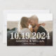 Salve o cartão de data com um anúncio de casamento de fotos. Casamento em breve? É hora de fazer o anúncio do casamento. Convide amigos e família para o seu casamento. Crie um cartão personalizado Salvar a data com sua foto para anunciar seu casamento para a família e amigos. Insira fácil e simplesmente sua foto no modelo do cartão e edite o texto Salvar sua Data para incluir os nomes da noiva e do noivo e a data do casamento. A inscrição de caligrafia Salvar a data adicionará um detalhe bonito à placa. Faça deste cartão parte do seu dia especial.