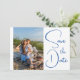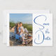 Se você está procurando uma "Salvar a data" que não seja tão formal, esta design é para você. A frente e o verso têm um fundo branco. Há uma área para a foto, na frente, junto com o texto "Salvar a Data". No texto traseiro você pode manter ou personalizar.