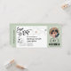 Destino Bilhete de Embarque de Casamento na Praia com ícone de coração e avião em ouro Salve a Data com arte de linha minimalista simples mapa mundial e cor de fundo verde sálvia