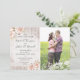 Salve a data com colagem de fotos personalizadas em estilo elegante de casa de campo! Rosas de jardim elegantes em estilo shabby chic lançam um toque quente de rubor e coral para uma celebração de casamento em casa de campo! Completo com fundo de madeira rústica, este design é perfeito para uma reunião no campo, cottage ou até mesmo no jardim.