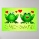 poster de 24" x 16", sapos verdes de desenho Twitchy e Beulah com corações vermelhos. Você pode obter este poster em tamanhos maiores ou menores, se desejar, ou em diferentes tipos de papel. As zonas úmidas, como os pântanos, os pântanos, os pântanos e os pântanos, são vitais para um ambiente saudável. Uma porção do produto de cada produto "Salve o pântano!" vai para a educação ambiental e conservação de zonas úmidas. Visite http://www.happywishingwell.com/save-the-swamp.html para mais informações e tenha um dia agitado!
