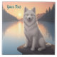 Samoyed sentado à beira de um lago ao pôr do sol. Adicione esta imagem a outros produtos. Adicione seu próprio texto também. Muitos animais de estimação na minha loja.