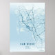 A stunning art print of San Diego Map rendered in a beautiful ocean color palette. Every street, highway, and waterway is mapped in fine detail against a rich ocean background. Perfect as a statement piece for your home, office, or as a gift for any San Diegan.