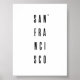 Love to go to San Fransisco in the USA. Typography in black and (transparent) white. You can change the background color.