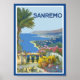 Super poster vintage de San Remo, na Itália, apresentando uma flor coberta por sacada, com vista para o mar azul.