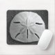 Um dólar de areia repousa na praia arenosa com luz lateral suave do pôr do sol. Imagem é uma fotografia a preto e branco tirada em Playa Grande, Costa Rica na Costa do Pacífico. Crie seu próprio mousepad pessoal de concha do mar com texto e imagens personalizados para um presente especial de concha!